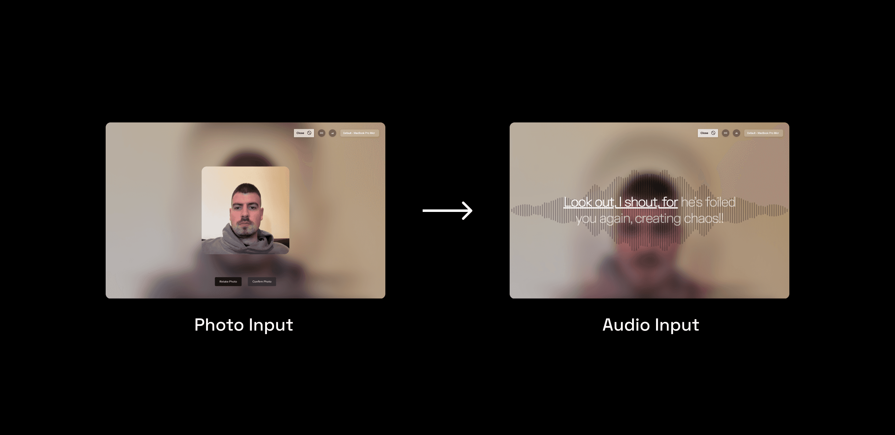 The second component of the project was the interactive film, featuring deepfake expert Kyle Vorbach. During the film, a photo and audio sample are collected from the user, which are then seamlessly integrated into the story for dramatic effect.