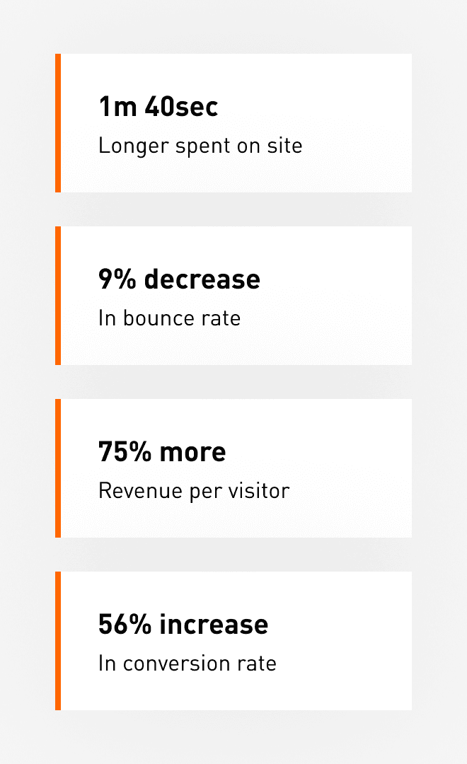 As a result of our efforts, the new Harley-Davidson site performed significantly better than the previous one. Gains in time spent on site, revenue per visitor, and conversion highlighted these improvements.